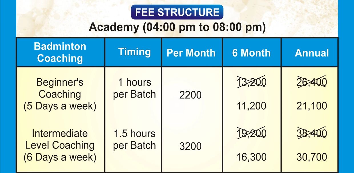 Badminton coaching is available on chargeable basis (separate from club membership).