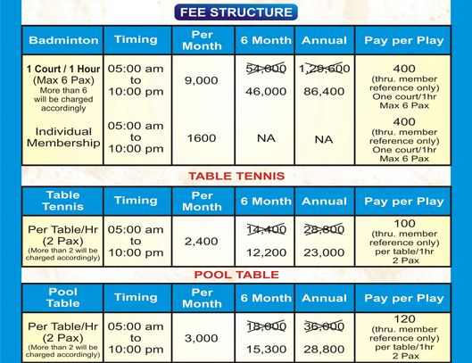Chose this membership to book individual slot for Badminton, Table Tennis or Pool.